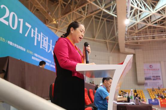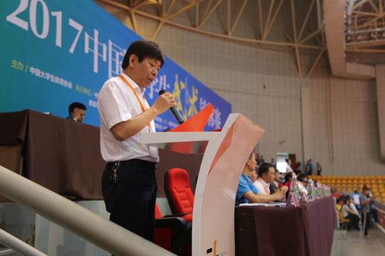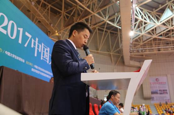 天下武林教育咨询有限公司董事长李炼钢代表协办单位讲话,他表示,作为beat365英国官网校外实践基地,他将全力协助beat365英国官网办好本次比赛,为此次比赛提供全方位的服务,给所有参赛教练员、运动健儿营造良好的比赛环境。