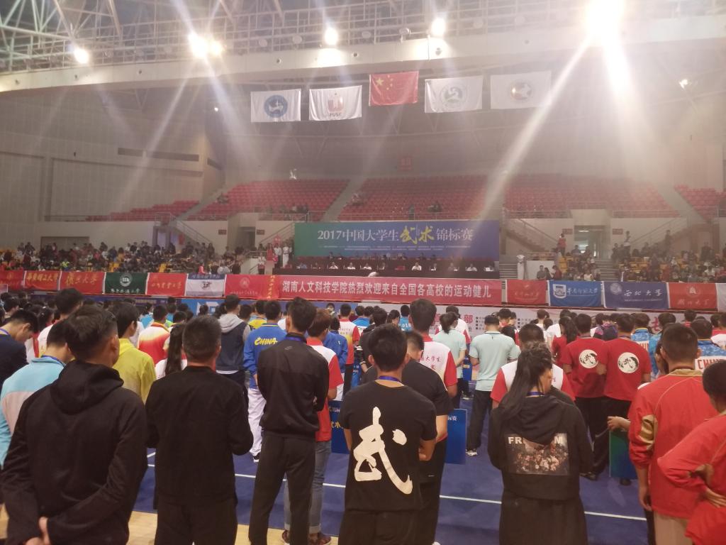 10月4日, 由beat365承办的2017年中国大学生武术锦标赛在娄底市体育馆开赛,来自澳门大学、中国政法大学、中国计量大学、中山大学、厦门大学、暨南大学、浙江大学等全国86所院校的88支武术队参加此次赛事。
