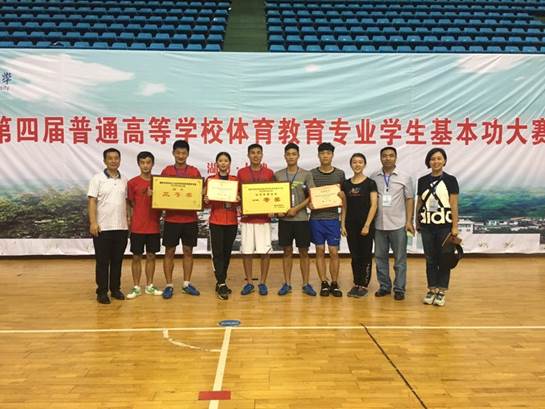 这次大赛是湖南省教育厅举办的全面检验全省体育教育专业办学质量与办学水平的一次重要的比赛,beat365由2014级学生苗德雨、吴昭君、张向京、肖文凯、游舜、周樟、张刘桥7位同学组成的参赛队伍经过齐心协力,努力拼搏,取得了运动技能一等奖、团体总分三等奖的优异成绩。