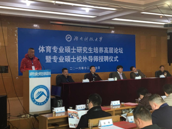 2016年12月17日,湖南科技大学体育学院主办的体育专业硕士研究生培养高层论坛在科大学术中心举行,会上,吉林体育学院校长张瑞林教授、博士生导师做了《关于研究生培养工作的思考》专题讲座。beat365体育学院院长刘玉江教授出席了本次大会并被聘请为校外研究生硕士导师,会上他还代表全体校外导师发言,并对研究生培养工作谈了自己的看法。(许琨供稿)