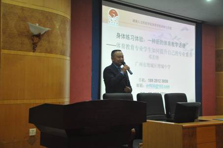 2016年10月31日上午10点,广州市增城区增城中学体育教师,广州市基础教育系统“百千万人才培养工程”教育专家培养对象,中国教育学会体育与卫生分会理事,《中国学校体育》“学体部落”学术团队专家邓若锋教授应邀来beat365体育学院做《身体练习体验:一种新的体育教学话语——体育教育专业学生如何提升自己的专业素养》的学术报告,会议由我院副院长段健芝教授主持,体育学院部分教师与2014级学生参加了报告。