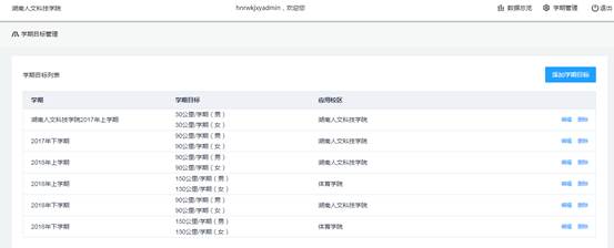 学期运动目标:非专业男女生90公里;体育学院男生150公里,体育学院女生130公里