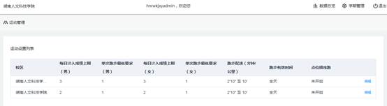 2.体育学院:单次跑步计入成绩男生女生为1公里;男女生每日计入成绩上限为3公里;要求学生每周运动最少3次;