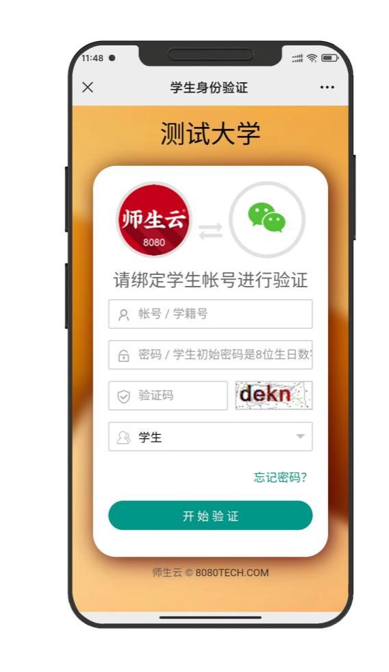 ④ 验证绑定 | 教师帐号:请联系管理员 学生帐号:初始密码是8位生日数字 |