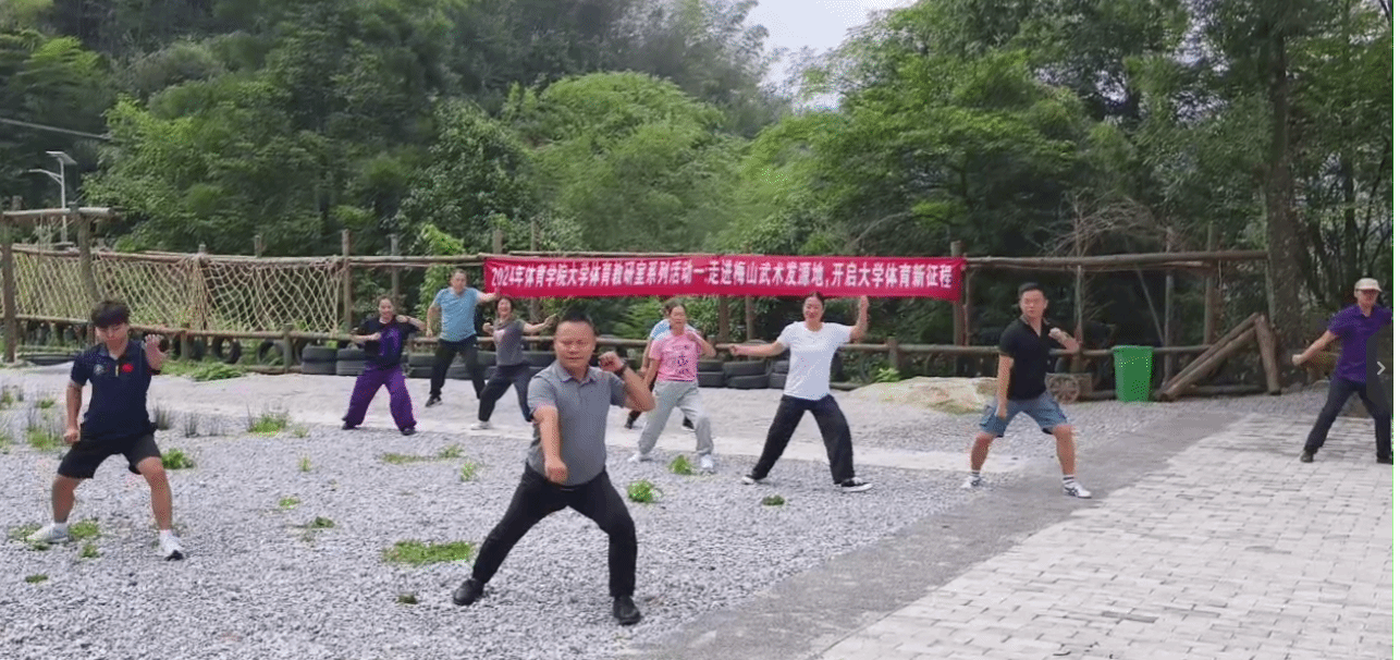 为进一步提升大学体育公共课教学质量,弘扬本土民俗体育文化,增强教师的教学能力与综合素质,大学体育教研室于2024年9月11日,在周惠新院长与陈勤副院长的带领下,开展了“2024年大学体育教研室系列活动之一:走进梅山武术发源地,探索大学体育教学新路径”的研学活动。此次活动旨在通过深入学习和研究梅山武术文化,促进本土文化与现代体育教学的融合,激发学生对体育课程的兴趣,助力地方文化的传承与创新发展。