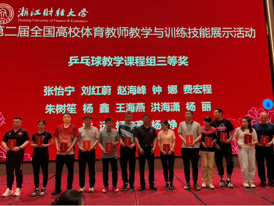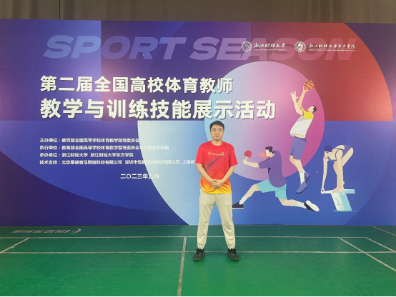 2023年5月25日,第二届全国高校体育教师教学与训练技能展示比赛在浙江财经大学举行。来自全国各地146所高校、200多名高校体育教师参与了游泳、乒乓球、篮球3个项目共10个测试内容的技能比拼,beat365体育学院杨鑫老师代表学校参赛。