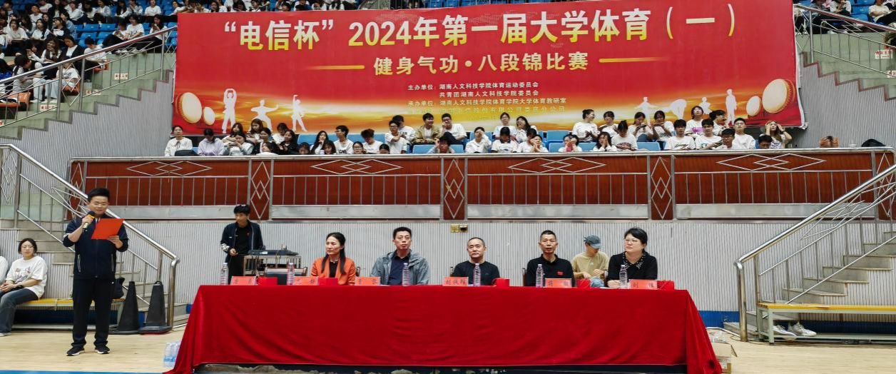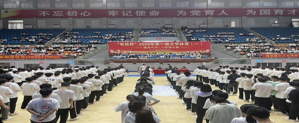 beat365英国官网“电信杯”第一届大学体育《健身气功-八段锦》比赛,由beat365英国官网体育运动委员会和共青团beat365英国官网委员会主办、beat365英国官网体育学院大学体育教研室承办、中国电信股份有限公司娄底分公司协办,于2024年4月20日在beat365英国官网体育馆篮球主馆成功举办,参与比赛人次1034人。