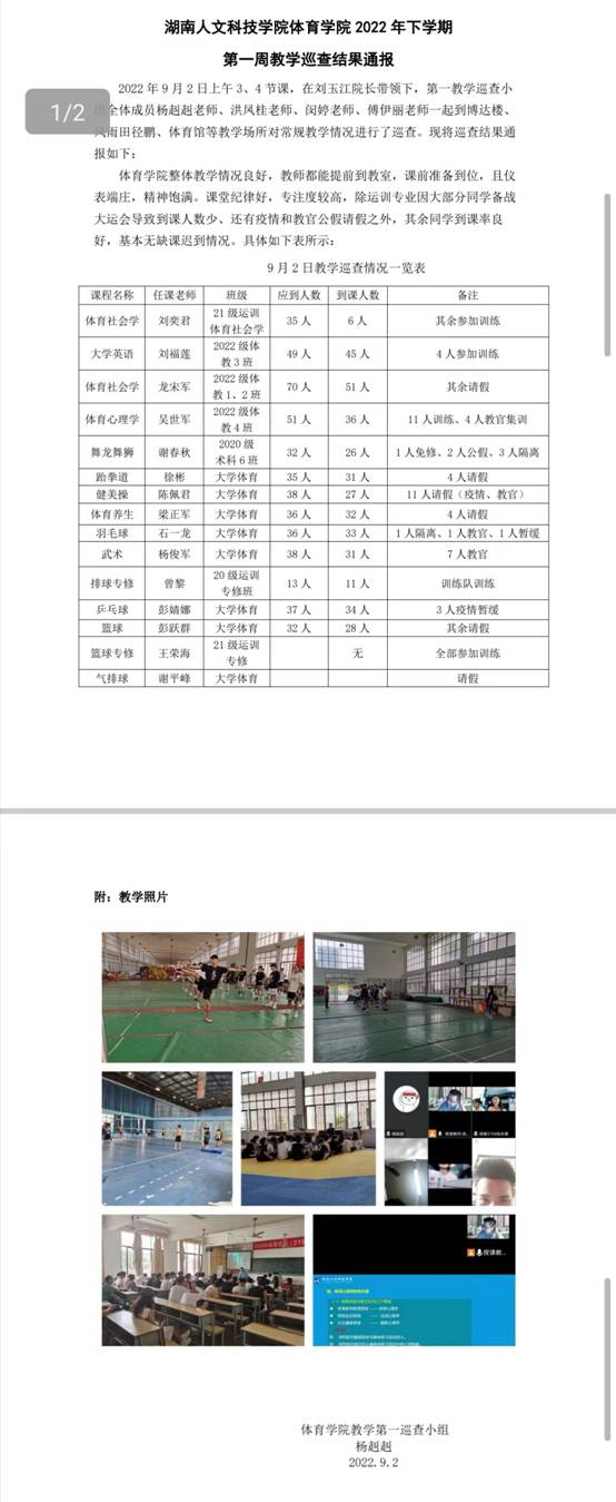 beat365英国官网体育学院2022年下学期第一周教学巡查结果通报