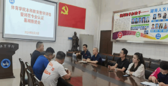 8月3日,体育学院在体育馆会议室召开本科教育教学评估和师范专业认证工作暑期推进会。会议由体育学院副院长陈勤主持,党总支书记曾黎、院长周惠新、副院长董植寿以及各相关专业负责人和教研室主任出席了此次会议。