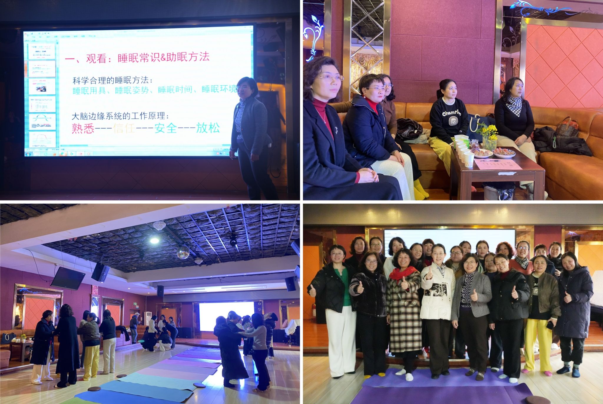 女教职工是学校发展的半边天,在家里她们是母亲、是妻子、是女儿,在学校他们是教学骨干是工作者。她们要承受孕期、产期、生理期、更年期的种种不适,校工会从关爱女性的睡眠健康着手,促进她们学会自我心理调适,用科学的方法改善睡眠,唤醒内在的力量,拥抱更美好的生活,让她们以更饱满的精力投入到为学校建设发展的工作中去。活动结束后,好评如潮,大家纷纷表示:校工会把活动做到了老师们的心坎上,希望这样的活动越多越好!(图文 校工会 一审周浩鹏 二审刘秀隆 三审刘志成)