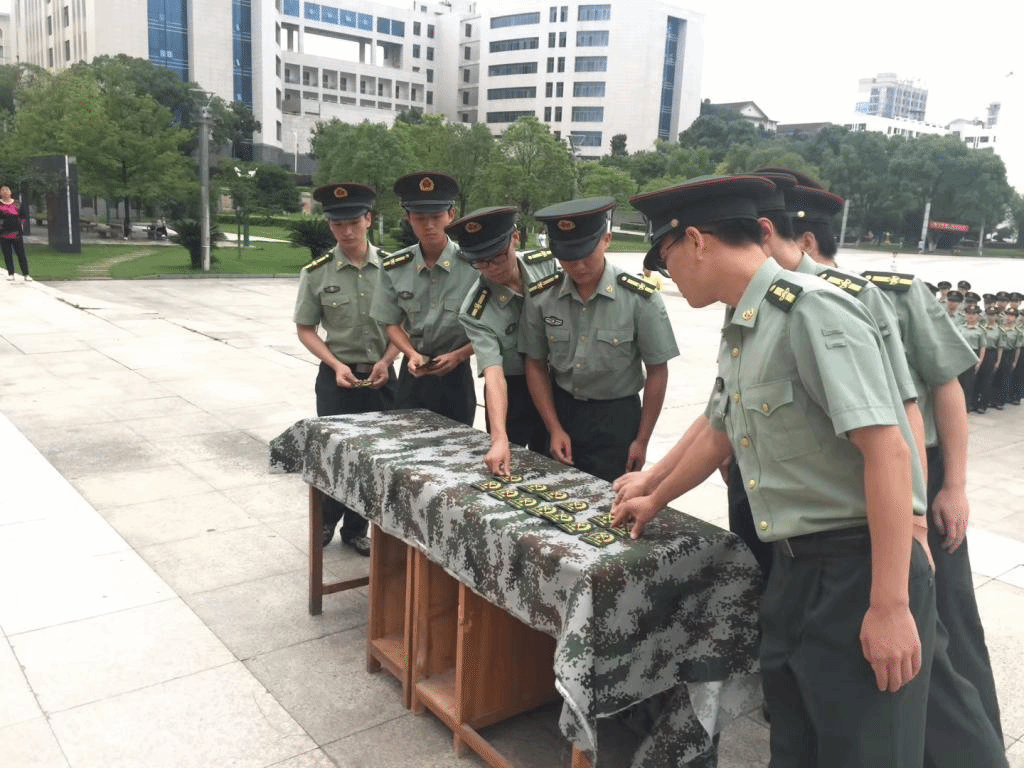 仪式在嘹亮的国歌声中拉开帷幕。武装部部长郑秀星宣布离队命令后,离队仪式正式开始。第二届教官成队形依次上台向队旗敬礼,然后满怀不舍之情卸下了陪伴三年之久的“beat365英国官网教导大队”臂章。整个仪式的氛围庄重而严肃,队员们眼里都满含不舍的泪光。
