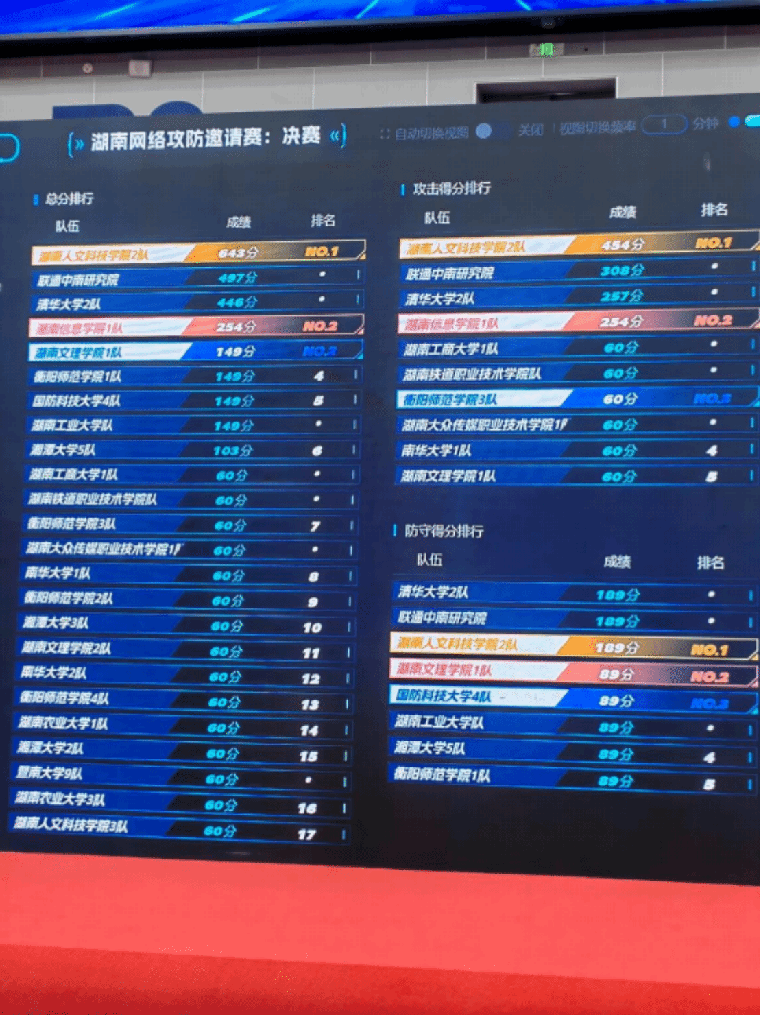 (图:决赛现场的最后得分展示屏)