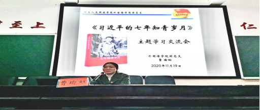 2020年11月19日,外国语学院全体团培学生于播馨楼开展“习近平的七年知青岁月”专题交流学习会。团总支书记曹瑜虹老师主持。