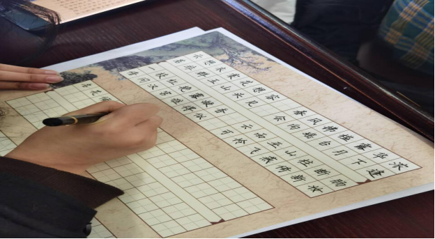图为学生们在书写