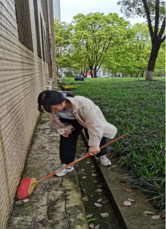 四月细雨不断,终于雨过天晴。同学们早早挑选好工具,进入划分的区域进行劳动。活动期间,同学们分工打扫,捡垃圾,针对花田面积大,角落地带难清理的特点,大家明确分工,采用划片划域的方式,力争不留死角。最后,经过一个小时的辛勤劳动,清洁区被同学们打扫得干干净净。