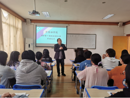2021年4月17日上午,外国语学院在播馨楼301开展2021年第一期创业模拟班培训开班仪式。创新创业学院院长刘红燃、专家彭晓华、高级讲师贺懿、监管人员袁晓明、外国语学院党总支副书记刘莉、班主任龙立平以及32名学员参加了此次培训。刘书记主持开幕式。