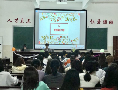 在同学们的期盼中,会议在暖场视频的播放中拉开帷幕。黄湘分享了考研期间择校以及选择专业方面的经验;湖南省英语演讲比赛一等奖获得者徐成武讲述了自己参加比赛的体会和收获;邱晶和卢瑶分享了备考教师资格证的经历和经验,告诉同学们取得成就需要日积月累,更需要坚持不懈的决心;全国跨境电子商务技能竞赛特等奖获得者李怡靖分享了自己在跨境电商的宝贵经验,并希望同学们端正学习态度,表示态度决定一切;“华研社”阅读大赛二等奖获得者张宁分享学习过程中可能所遇到的困难及其经验;素拓部部长杨凯威就如何正确管理时间以及如何制定学习目标提出了宝贵意见。