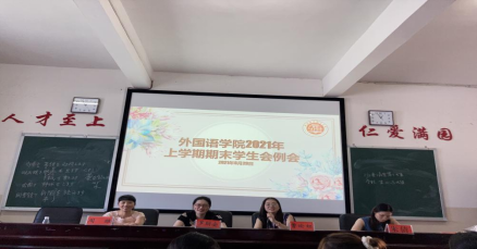 2021年6月23日,外国语学院于播馨楼406召开2021年上学期期末学生分会工作例会。院党总支副书记罗嗣安、全体辅导员老师以及院学生会成员参与了本次会议。
