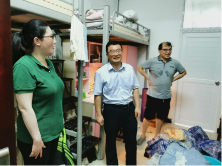 按照学校寝室调整方案,我院18栋寝室整体搬迁到8栋寝室。为确保搬迁工作安全、有序进行,2012年6月26日上午,外国语学院党总支书记阳立新、副书记罗嗣安、全体辅导员和18级班主任深入学生寝室,协调指导工作。