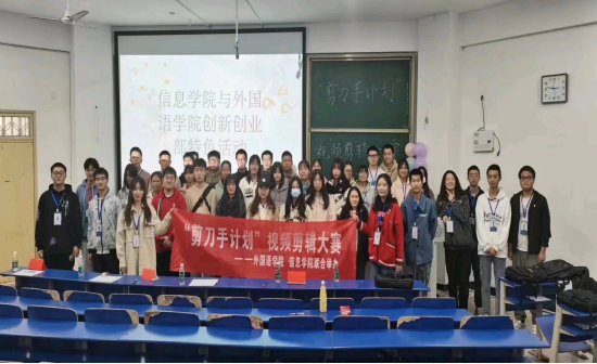 为锻炼大学生的创新思维能力,实践能力,在丰富大学生课余生活的同时,让他们有所学、有所获。11月7日下午,外国语学院与信息学院在致远楼联合举办了“剪刀手”视频剪辑特色活动。莅临本次活动的评委有:外国语学院全体辅导员、两院学生会主席以及学创联主席。