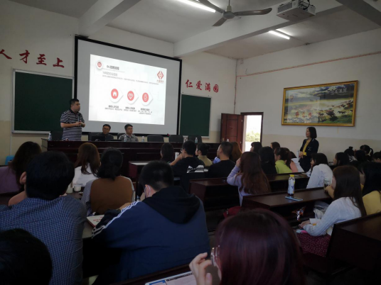 下午,“大唐明升教育集团”在播馨楼406室举行了专场宣讲招聘会,我院17级英语专业班级及18级英语教育班共计60多位同学参加。其公司负责人唐总与同学们分享了自己的创业经验;介绍了其集团公司发展情况(大唐明升教育集团是一家有15年历史的集教育培训、教师人才服务为一体的服务企业,主要涵盖幼儿教育、小学、初高中及中职中专等教育培训)以及员工的工资福利、晋升渠道等情况。会后经过面试及试讲,我院2位同学与深圳市“大唐明升集团”达成实习就业意向。