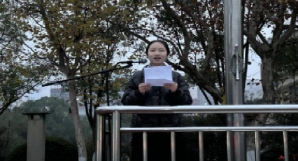 接着,学生代表2023级英语五班朱丹发言,她从发生在同学们身边的小事出发讲述了知法学法的重要性,并向同学们发出“应树立宪法法律至上的法治观念”“应多阅读有关法律的书籍”及“应当将所学法律知识应用于实际”三点倡议,呼吁同学们重视法律知识,为共创法治社会和平安校园贡献自己的力量。