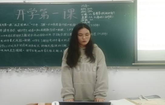 团课伊始,在主持人的组织下,同学们阅读了《龙年第一课:“我是接班人”》文件并观看了《书山有路勤为径》视频,激发了爱国情怀和文化自信,强化了“功成不必在我,功成必定有我”的责任担当,进而坚定了新学期努力学习,奋发向上的决心。其后,同学们阅读了《2024年基层团组织主题团日活动指引》文件,深入认识了新学期主题团日活动相关内容,提高了服务校园团组织活动的热情。然后,同学们通过阅读《电动车紧急提醒》文件和观看《电动车着火风险》视频,深刻意识到了电动车着火的危害性。最后,同学们对如何正确使用电动车的相关话题展开了积极的讨论,大家各抒己见,纷纷表示要防患未然,做平安校园的建设者。