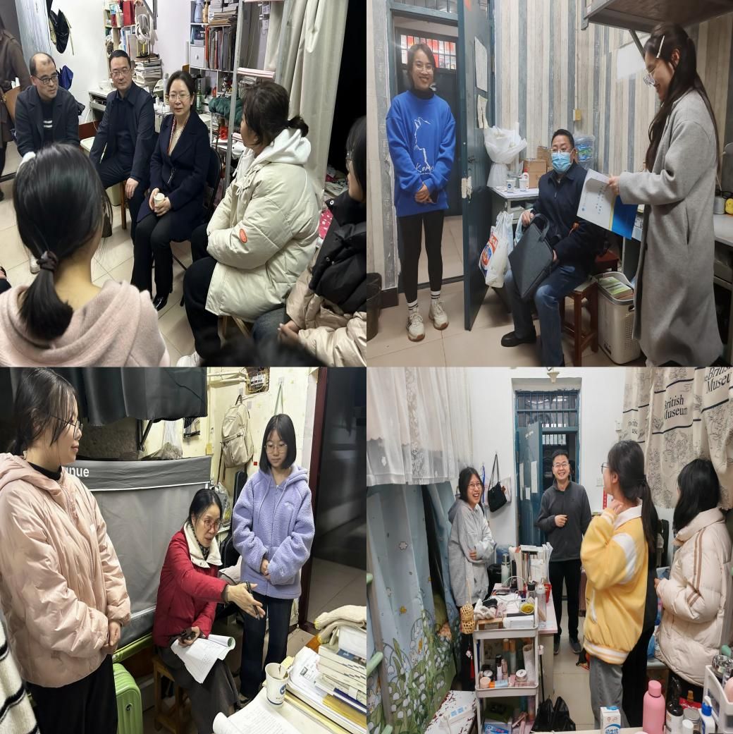 校领导凌艳平及校院中层领导干部一行人来到联系寝室,向同学们表达了亲切的问候,交流过程中,领导老师们认真耐心地倾听了同学们生活和学习上的烦恼,为同学们答疑解惑,解决困难。然后,凌书记和中层领导干部们向同学们宣讲了两会精神,鼓励同学们在学习之余更要关注国家大事,为推动中国特色社会主义事业发展做出积极贡献。最后,希望同学们在新的学期里能继续保持良好的个人习惯,从身边小事做起,勤奋努力,全面发展,勇做新时代好青年。