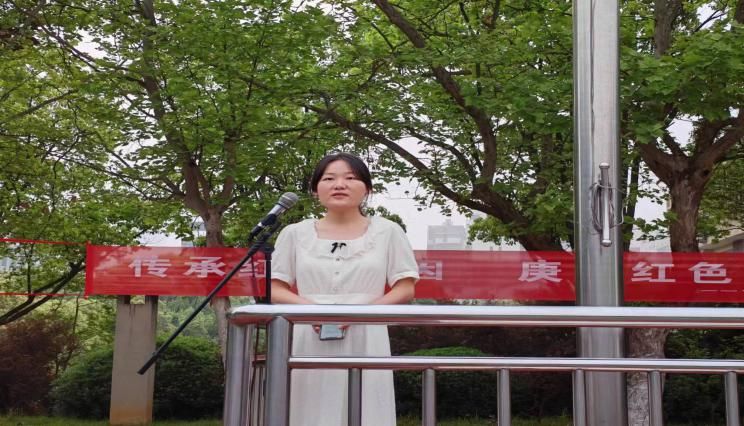 接着,英语专业教研室刘欣磊老师作国旗下的讲话。她结合自身教学经验号召同学们做三向“度”的大学生:一是思想上有高度,多关注时政以拓宽思想格局,把小我融入大我;二是学习上有深度,要多想多思以发掘问题本质,把知识化浅显为深刻;三是生活上有广度,时刻谨记海纳百川,有容乃大,把事放小把心放大。她鼓励同学们积极向榜样学习,争做有深度,有温度,有风度的新时代大学生。