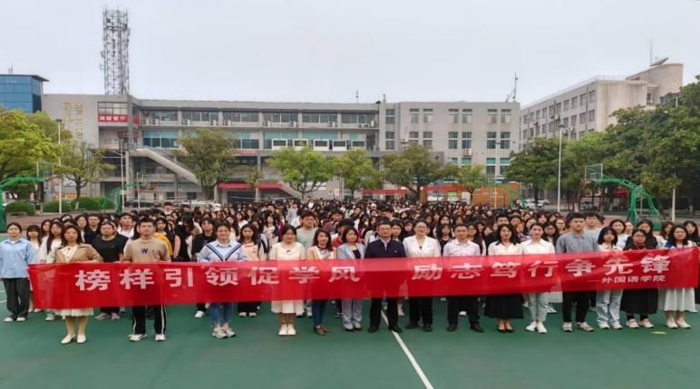 为促进学院学风建设的深入开展,弘扬榜样精神,腾发奋进力量,2024年4月15日早晨,外国语学院在宇光球场举行“榜样引领促学风,励志笃行争先锋”主题升旗仪式。外国语学院党总支书记阳立新、学生工作部副部长谢四元、外国语学院党总支副书记罗嗣安、学生工作部教育管理科科长宋双、学院全体辅导员、班主任代表及全院学生参加,仪式由罗嗣安主持。