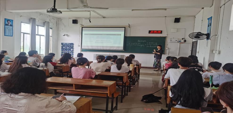 为响应学校“教学质量提升月”号召,充分发挥骨干教师在教学中的引领示范作用,5月27日下午,商务英语教研室邓梦林老师就分词的形式、功能和运用在播馨楼411为全院教师上了一堂英语语法示范课。