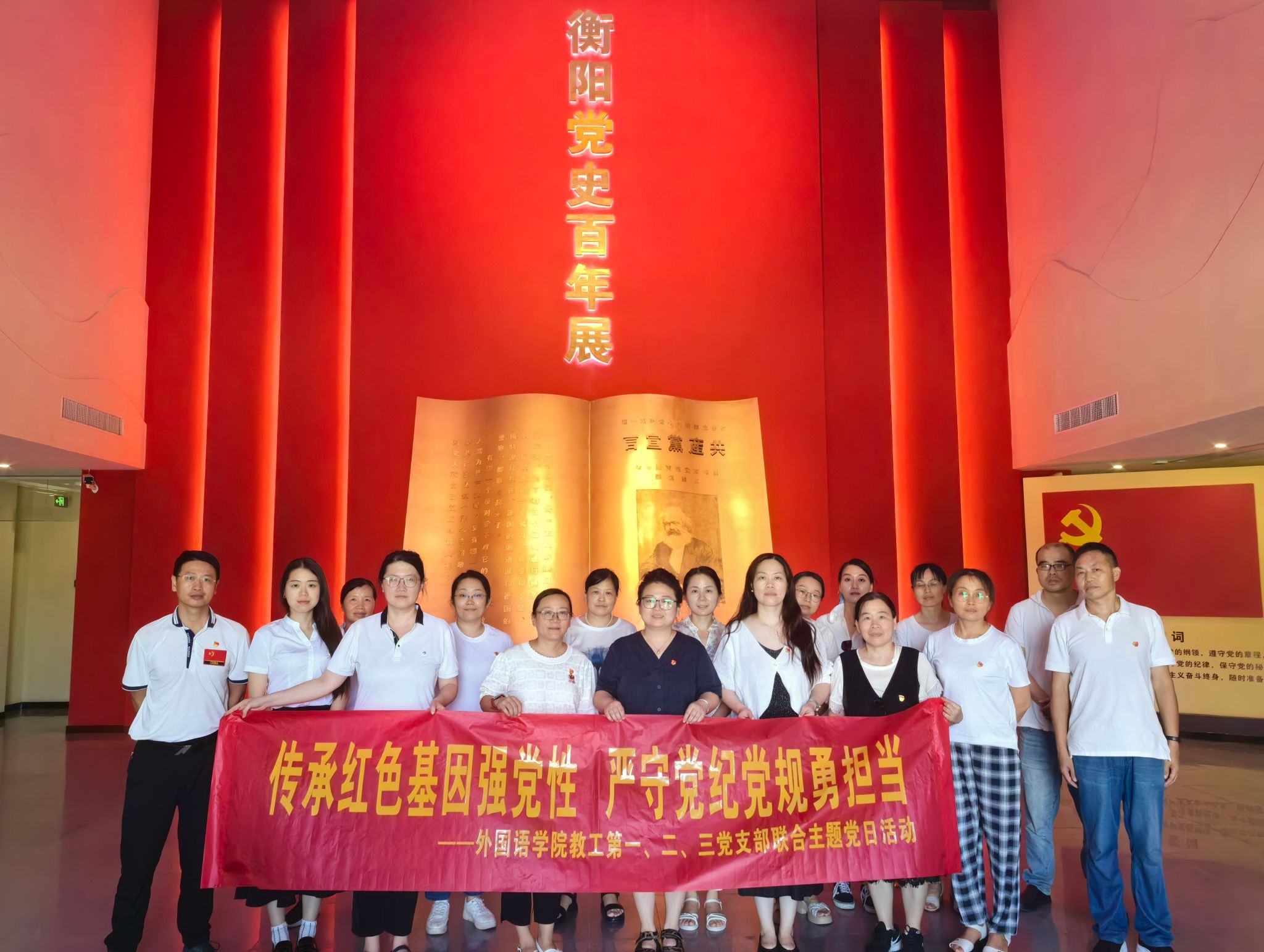 为扎实开展党纪学习教育,进一步加强党员干部的党性教育,增强党员干部的纪律意识,7月16日,外国语学院教工第一、二、三党支部一行44人前往衡阳,联合开展“传承红色基因强党性 严守党纪党规勇担当”主题党日活动。
