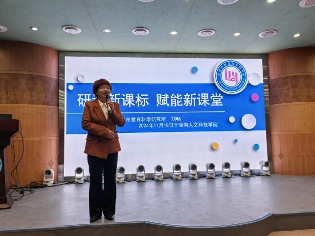 娄底市教育科学研究所教研员刘畅老师做了主题为“研读新课标,赋能新课堂”的讲座。刘老师用自身的经历告诉我们如何从小事做起,如何将感恩和努力践行在工作中,我们深深地被刘老师的热情所感染,被刘老师的坚持所感动,我们看到了一位教书育人的楷模。
