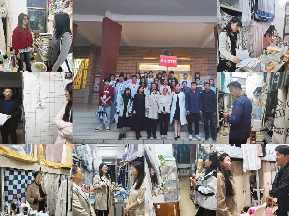 2025年4月24日19:00,外国语学院组织开展了寝室安全大排查。本次行动由学院党总支书记李霞、副书记罗嗣安带队,全体班主任、辅导员及团学骨干共同参与,覆盖了全院各年级学生寝室。