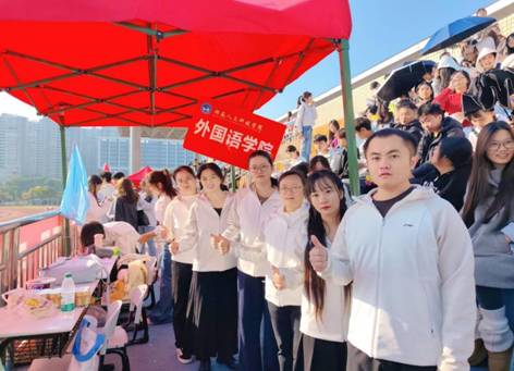 队伍行至主席台前,伴随着激昂的音乐,大家热情洋溢地挥舞起彩带。看那彩带划过的优美弧线,托起了“国际交流与对话”的语言之帆;听那“汇通中‘外’‘语’你相遇”的激昂口号,化成了外院人勇往直前的拼搏之楫。祝愿外国语学院运动员们在赛场上勇创佳绩!