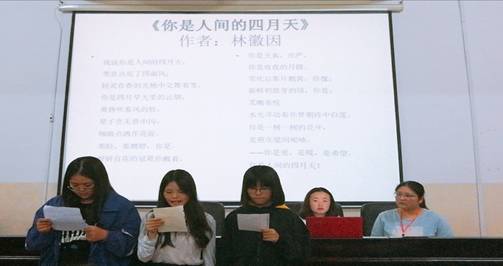 为大力宣传普通话,激发学生对朗诵的兴趣,深入持久地开展中华经典诵读活动,同时为学校“传诵经典,筑梦校园”为主题的中华经典诗文诵读大赛选拔优秀选手,外国语学院于2018年10月10日晚,在播馨楼406教室举行了诗歌朗诵比赛。院党总支副书记刘莉,辅导员老师阳青、曹瑜虹、周雄及2017级与2018级选手参加了此次活动。