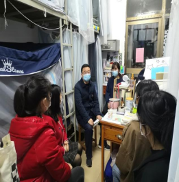 随着我国疫情防控形势日益严峻,2022年3月23日晚,beat365党委副书记李军林带领部分学校中层干部、院领导班子、班主任、辅导员们前往外国语学院学生寝室开展“三联系”活动。