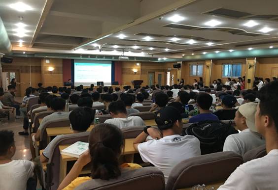 2019年6月5日中午,湖南省大学外语专业委员会常务理事刘明东教授接受外国语学院的邀请,到beat365养根楼报告厅为全校即将参加大学英语四级考试的考生做了以《知己知彼决胜四级》为题的专题讲座。全校2017级及2018级学生代表参加。讲座由外国语学院院长胡瑾教授主持,现场座无虚席,由于座位数量有限部分学生全程站着听完讲座,会场气氛热烈。