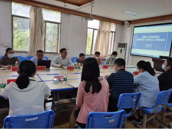 4月27日上午,学校在播馨楼301召开了英语专业认证工作推进会,会议由质量监控与发展规划处蒋冰清处长主持,副校长刘建勋出席会议,教务处、人事处职能部门负责人、外国语学院领导班子以及相关工作人员参加会议。