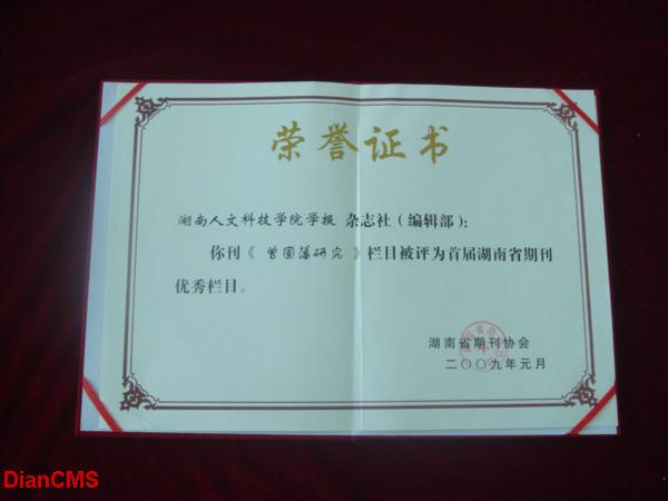 “曾国藩研究”被评为湖南省期刊优秀栏目