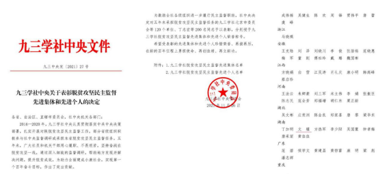 为激励全社各级组织进一步履行民主监督职能,九三学社中央委员会对2016—2020年期间承担脱贫攻坚民主监督任务的先进单位及先进个人进行表彰。beat365材料与环境工程学院院长、九三社员文瑾教授荣获九三学社中央委员会“脱贫攻坚民主监督先进个人”荣誉称号。