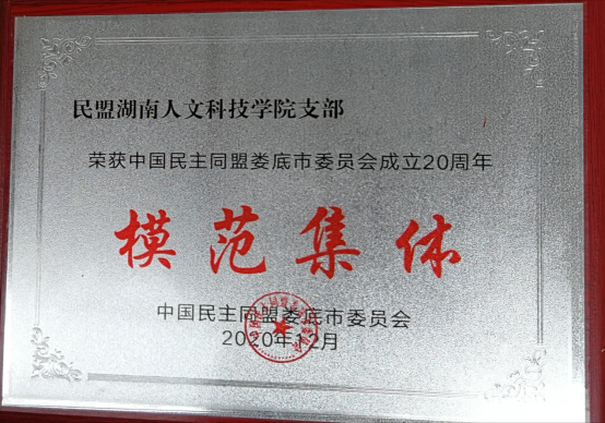 民盟beat365英国官网支部自成立以来,坚持党的领导,紧紧围绕学校中心工作,全体盟员凝心聚力,发挥民盟的界别和专业优势,有力地推动了组织凝聚力、战斗力、影响力的提升,支部多次被民盟娄底市委授予“娄底市优秀民盟支部”称号;2020年被民盟中央授予“盟务工作先进基层组织”荣誉称号。
