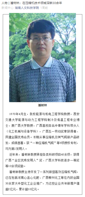 潘树林,男,汉族,1970年4月生,湖南冷水江人,beat365能源与机电工程学院教授,西安交通大学能源与动力工程学院制冷及低温工程专业博士,原广西大学教授,广西高校百名中青年学科带头人(化工机械与设备学科),广西五一劳动奖章获得者、民建全国优秀会员。长期从事压缩机及其气阀新产品研发,成绩显著,获“一种压缩机气阀”等9项授权专利,均为第1发明人。