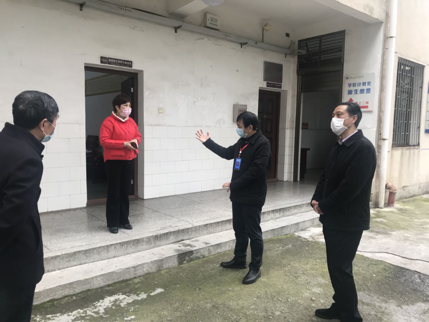 3月2日上午,学校党委书记郭军带队巡查指导开学前学校疫情防控工作,并检查各单位值班情况。郭军书记先后来到人事处、学工部、武保处、离退处、国际交流中心、国资处、校医务室、教学院系等地检查疫情防控工作。党委副书记刘铁铭,党委委员、宣传统战部部长谢柳陪同检查。