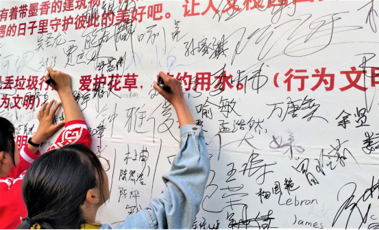 最后,校学生会各部门成员组织各院学生进行“做文明人文学子,我为人文代言”主题签名活动。