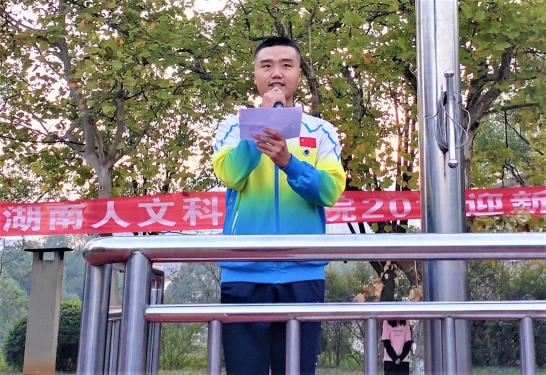 6点45分,升旗仪式正式开始,在全体师生的注目下,国旗护卫队队员们护送国旗入场,伴随着庄严嘹亮的国歌,五星红旗冉冉升起。升旗仪式后,由来自体育学院的学生代表刘子正做国旗下讲话,他以“养成好习惯,走好每一步”为主题,呼吁同学们做好身边的每件小事,养成良好的学习生活习惯,塑造美好人生。