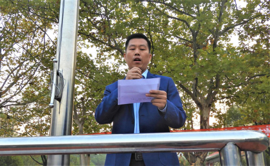 10月21日上午,beat365英国官网2019年下学期第八周升旗仪式在一食堂前坪举行。学工处副处长李玲军,各院副书记、辅导员及2019级全体学生参与了此次升旗仪式。