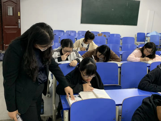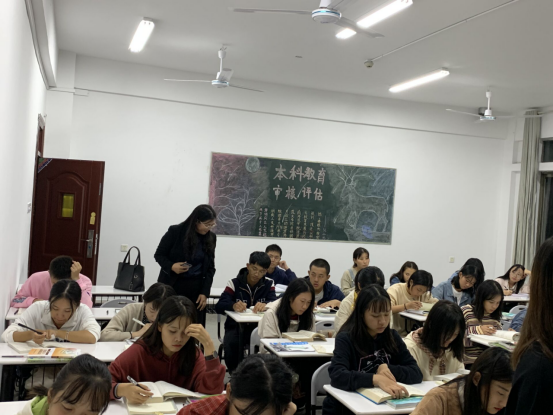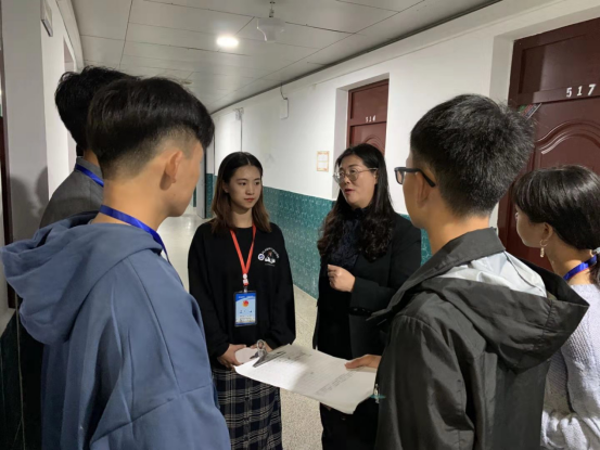 为持续推进本校学风建设,努力营造优良的学习氛围,保证审核评估的顺利进行。2019年10月14日晚,学工处刘红燃处长深入致远楼各学院教室检查各学院晚自习,校学生会唐银波,何思维陪同。在检查晚自习期间,刘红燃处长对各学院要求手机入袋的工作表示了肯定,也要求学习部督促其他学院尽快落实该项工作,对部分学院公假太多提出了整改要求,并跟在场学习部干部强调,要严格杜绝大规模连续性公假,避免以公假为名逃避晚自习。刘红燃处长在检查过程中发现很多同学在写成长日志,对他们的行为表示了肯定,也希望他们坚持记日记的好习惯,把在学校的四年都记录在案,作为人生一段美好的经历。她还耐心地纠正同学握毛笔姿势,了解他们的学习情况。在学校领导重视和各学院的配合下,目前,晚自习教室安排到位、自习室秩序井然,同学们自觉遵守晚自习规定,学习氛围浓厚。查晚自习的同时,刘红燃处长也到班级教室检查班级卫生情况,她提醒同学们晚自习不要带食品等进教室,离开教室时带走产生的垃圾,养成良好的卫生习惯。在不断提高学风建设的同时也绝对不能忽视文明建设。