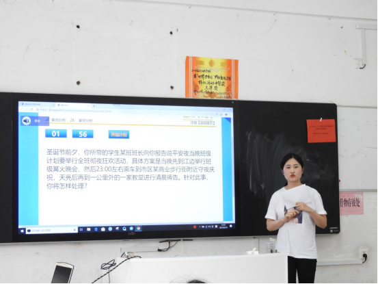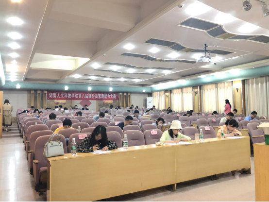 本次比赛分为笔试、机试、案例分析和谈心谈话四个环节。笔试采用闭卷答题的方式进行,主要考察辅导员对相关理论知识的掌握。机试由三部分组成:参赛辅导员首先需要在15分钟内根据一百名学生的证件照写出名字,做到“按图索骥”;然后在10张随机生成的证件照中找到并回答出其中自己所分管学生的名字,即“鱼目混珠”;最后根据大屏幕上显示的3条学生的信息,识别出这是自己分管的哪一名学生,即“描述定位”。案例分析环节需要辅导员围绕学生管理工作中常见问题的本质、解决思路、应对办法等进行阐述。谈心谈话类似于“角色扮演”,辅导员根据随机抽取的情景试题,两两组队进行谈话,模拟在不同情景下对学生进行的教育和疏导。