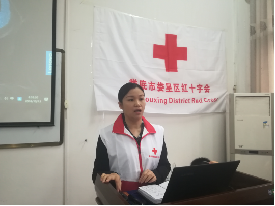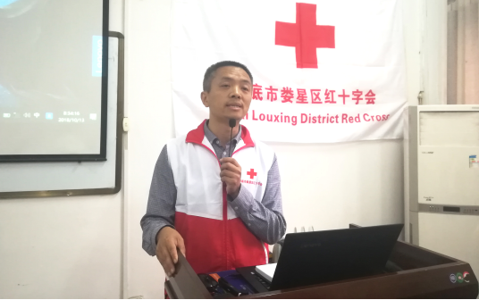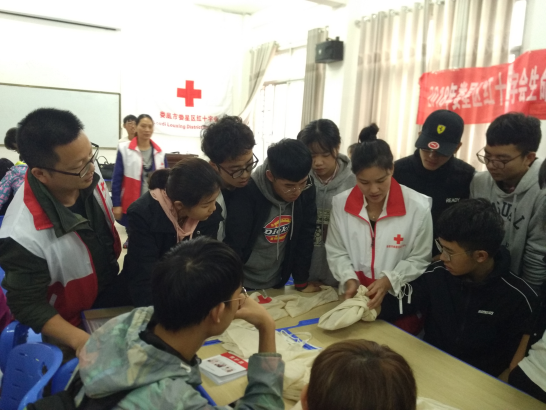 娄星区红十字会常务副会长严希对参加此次培训的同学们表示热烈欢迎,他强调培养每个人的红十字精神。副会长熊艳就本次培训提出“稳扎稳打,牢学活用”的要求。 胡梅芳教师就“红十字会的起源与救护概念“进行讲解,着重强调了红十字会的六个一和基本原则,就一些常见急症的救护方法进行说明。肖俊教师就“心肺复苏”和“人工呼吸”的理论和动作进行讲解和示范,他强调在急救时心肺复苏和人工呼吸并用的重要性,提醒同学们对动作的规范、频率的把控及力度大小的把握要格外注意。肖艳教师详细讲解了伤口包扎的理论,就急救时每个规范包扎的动作、方式及方法进行展示。在实践操作环节,各位红十字会老师全部出动,他们就同学们不会、不熟及不懂的动作重新指导练习,帮助同学们更加熟练掌握必要的急救能力,并对同学们的掌握能力进行考核。